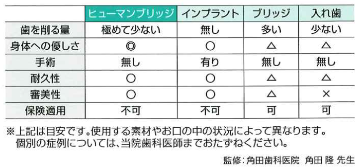 『ヒューマンブリッジ』は「なるべく歯を削らない治療」に属しております。
