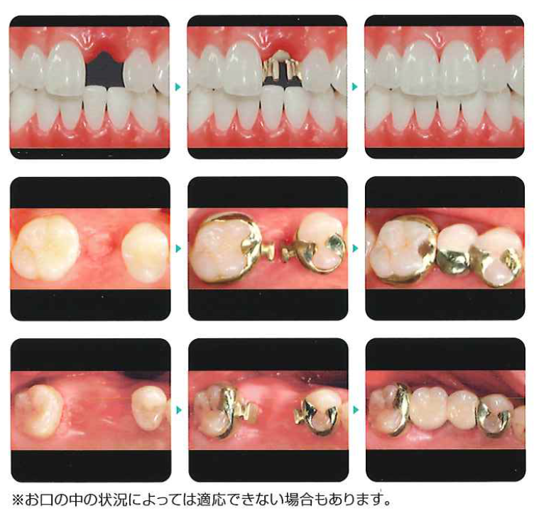 そのため相談やお見積もりはその場で安易には出せないのが欠点ですが、残念ながら喪失した歯の部分をどうしてよいか迷っている方や従来型の治療「ブリッジ」「入れ歯」「インプラント」に疑問や不安のある方は是非ご相談下さい。