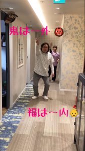 毎年恒例の豆まき?をスタッフみんなで行いました?