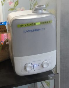こちらは中待合室に置いている噴霧器です。非常に細かい微粒子にして噴霧することで除菌、消臭を行っています