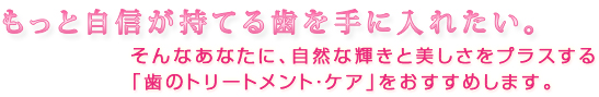 • 「歯のトリートメント・ケア」は、傷のついた部分と同じ成分を補給・修復して、自然に輝くキレイな歯にします。
